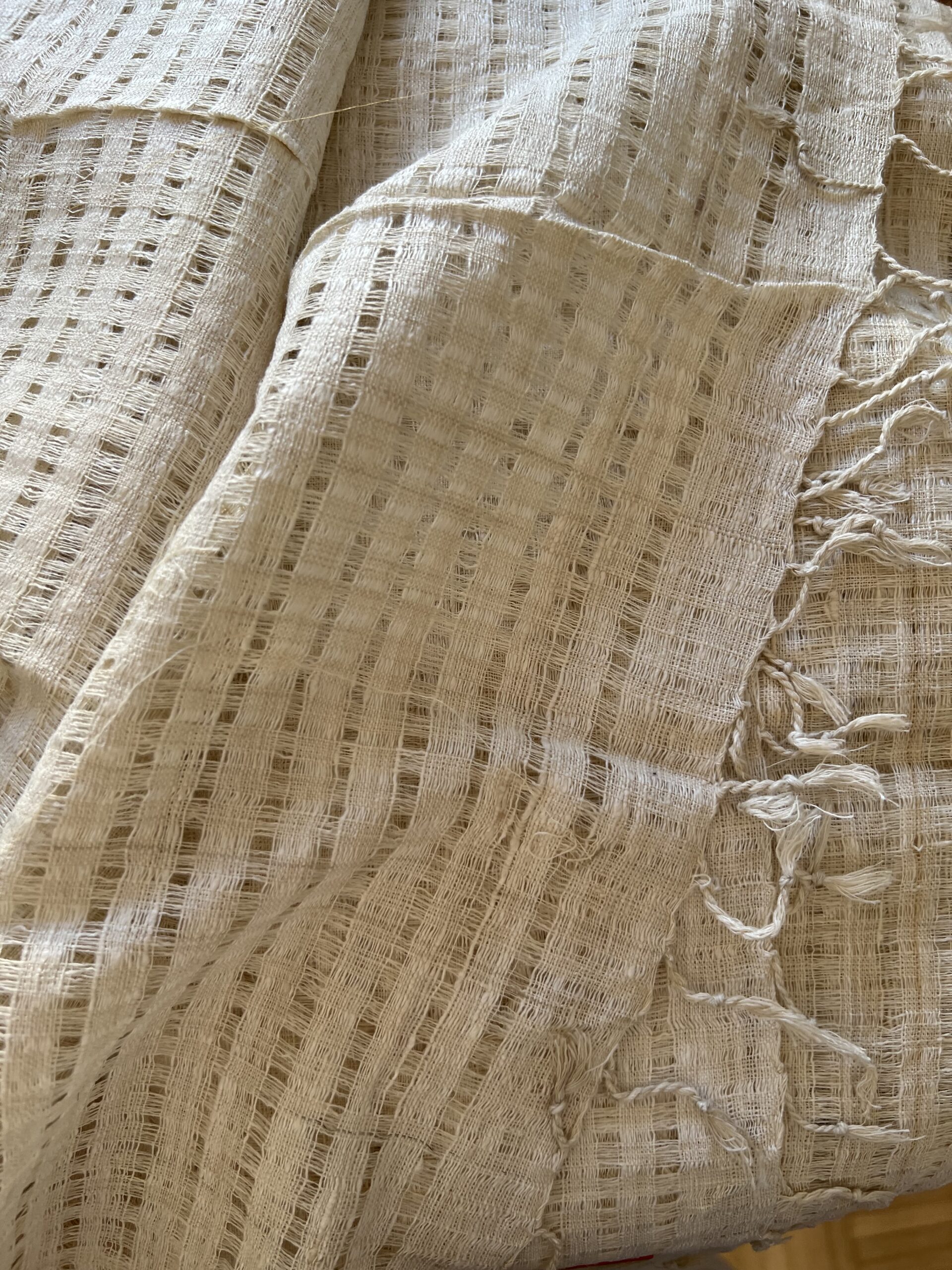 Cette magnifique étole est en soie Eri entièrement tissé à la main (dessins) par des artisans indiens, non teintée.